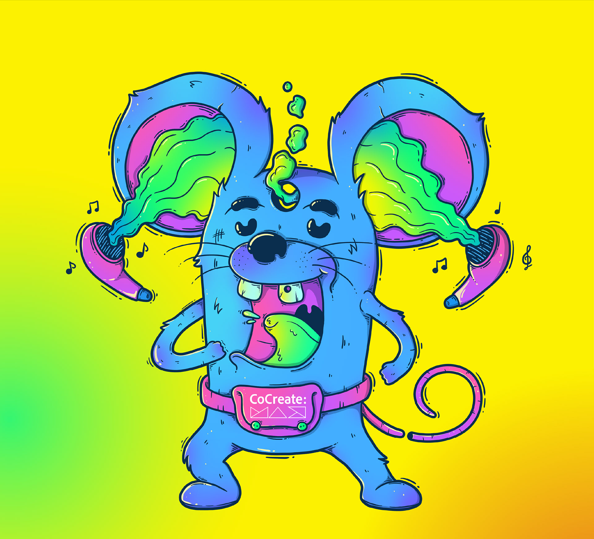 A whimsical illustration of a dancing mouse for a Spotify playlist promoting the Adobe MAX convention.