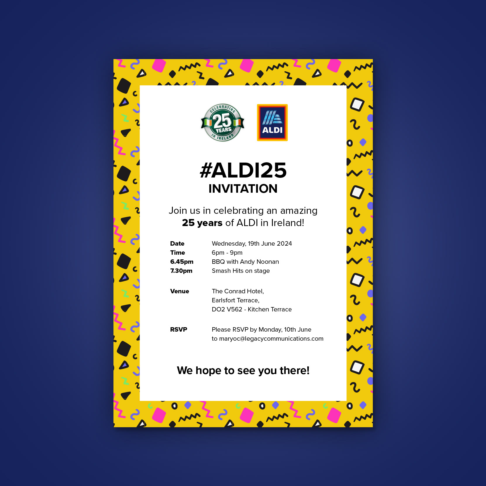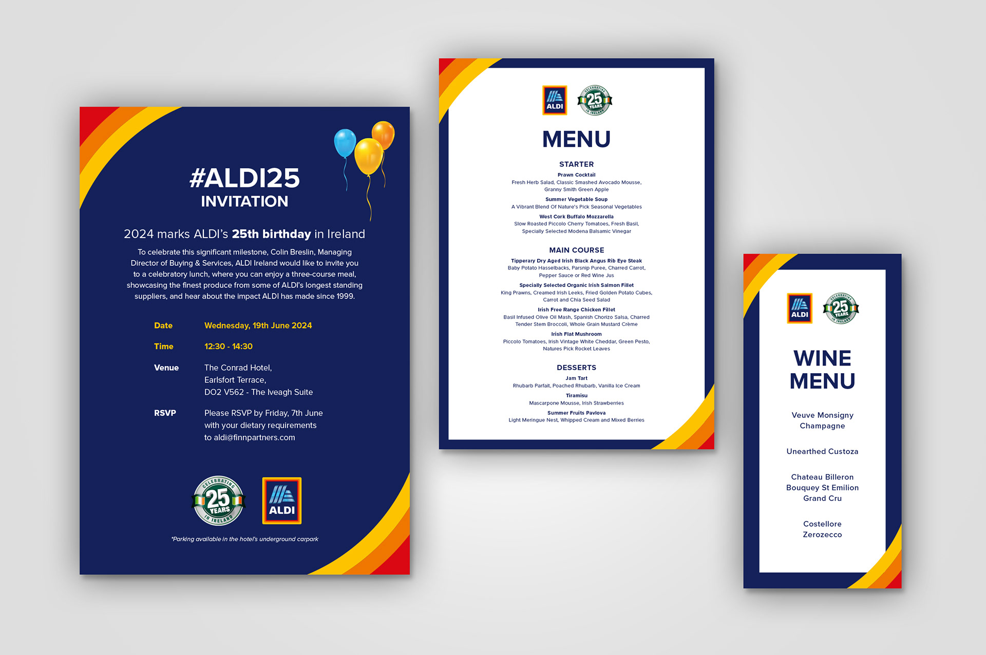 A curated set of supporting materials for a range of ALDI events. The task was to work within ALDI’s iconic brand guidelines while crafting distinctive designs for each occasion — keeping them fresh and event-specific without losing the brand’s signature simplicity and clean aesthetic.