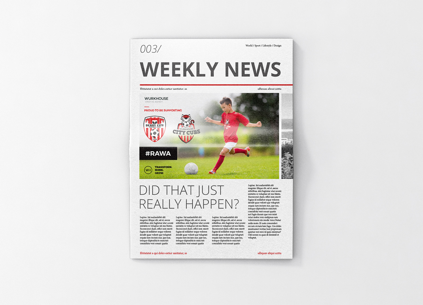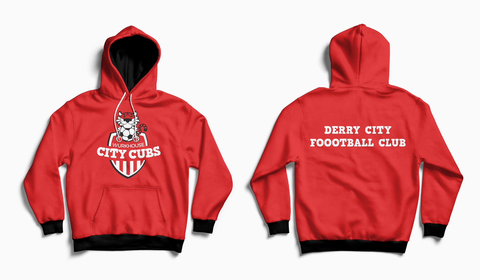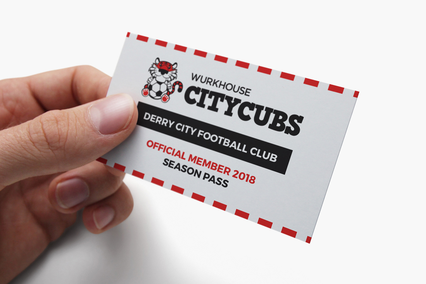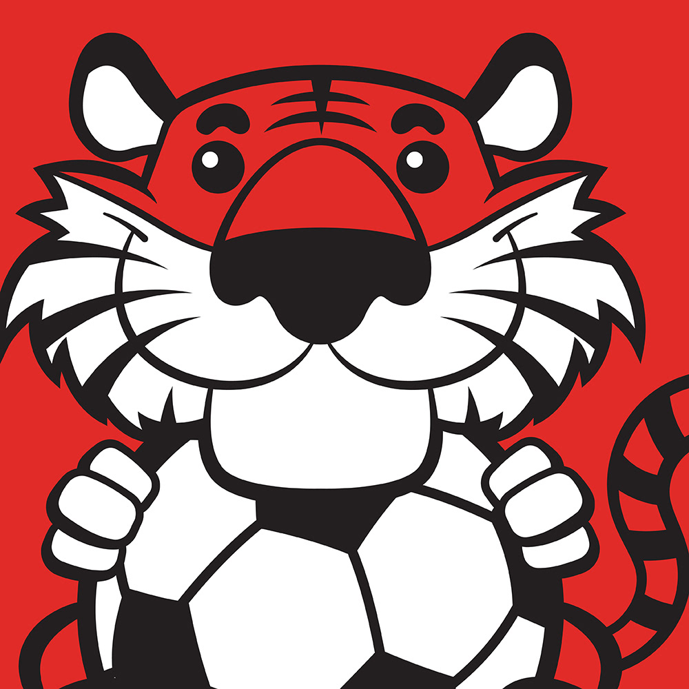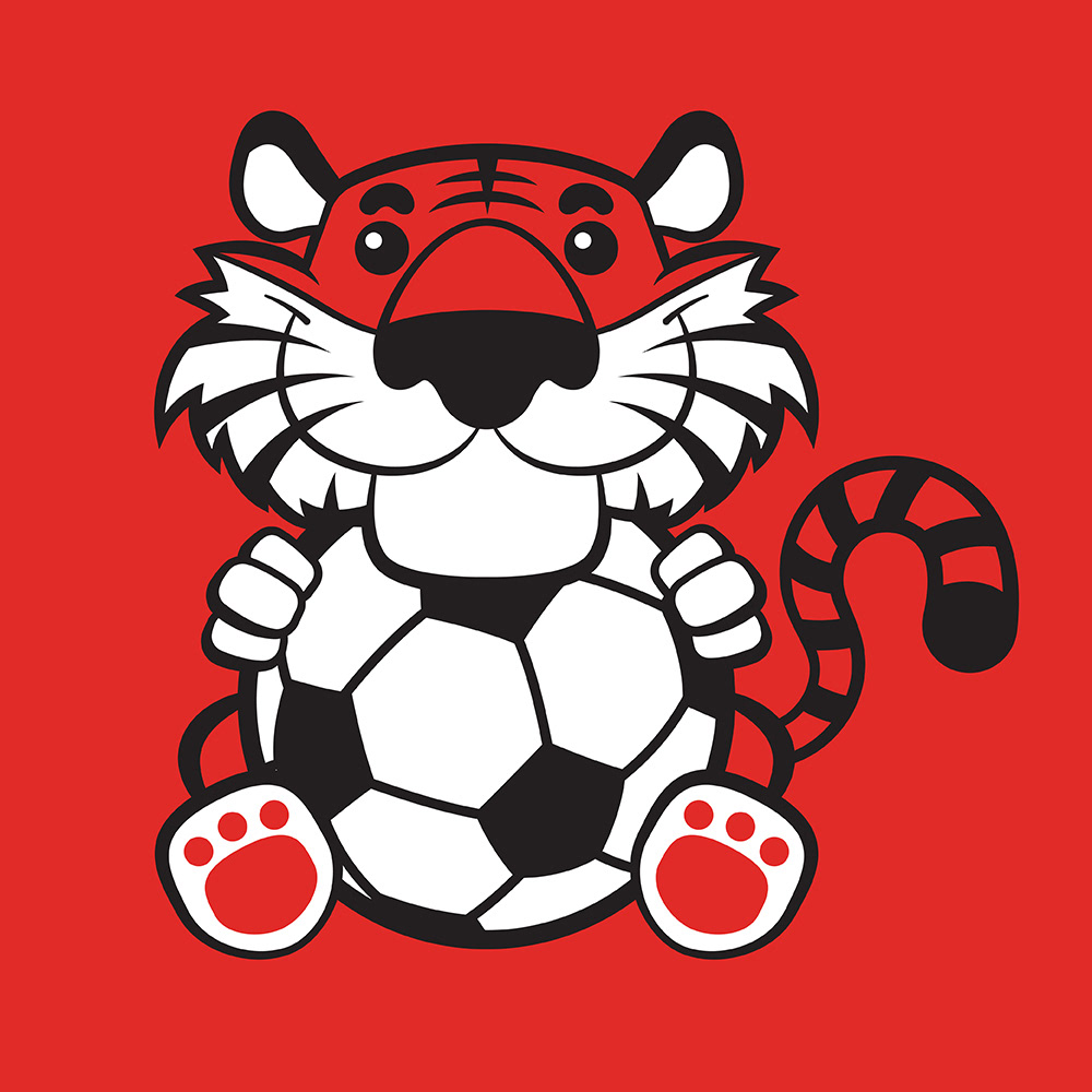 Derry City Cubs, the youth football division of Derry City FC, needed a brand identity that would appeal to children while staying true to the club’s heritage. The solution was a friendly illustrated mascot: a tiger character holding a football, designed to be approachable and fun. Using the club’s core red and white colours alongside traditional red stripes, the identity seamlessly connects with Derry FC while giving the Cubs their own playful and distinctive look.