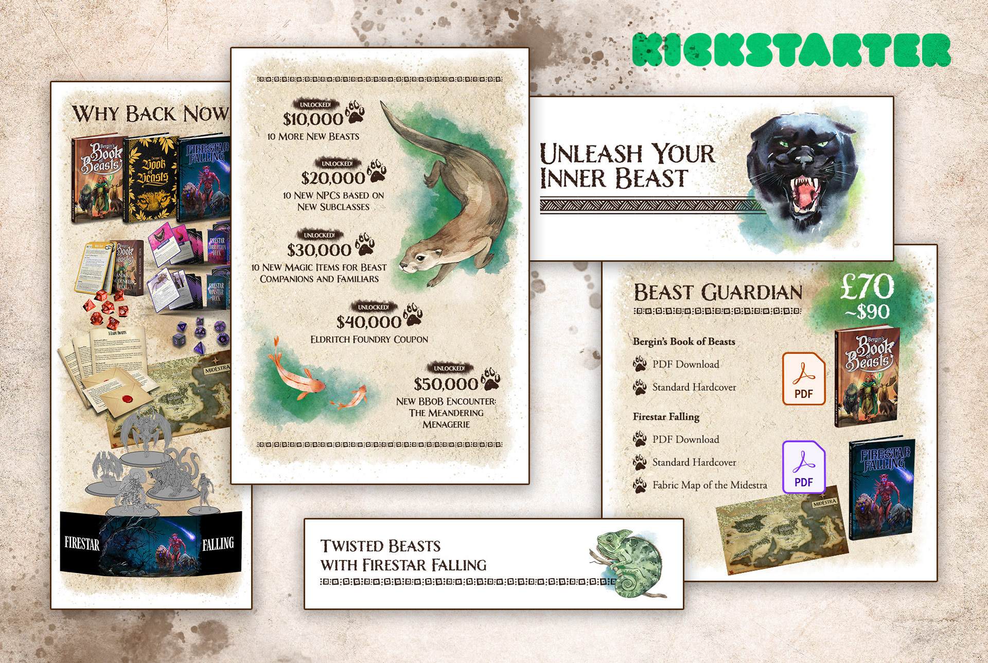 Penny Dragon Games, a TTRPG publisher specialising in supplementary Dungeons & Dragons 5e content, required a refreshed brand identity that would move away from their original Celtic-inspired logo. The new design introduced a stylised dragon face within a dice-shaped frame, paired with a red and orange colour palette to create a more familiar and instantly recognisable connection to classic D&D materials. The updated identity was applied consistently across all brand touchpoints, including social media, promotional materials, book layouts, and digital PDF releases. The collaboration also involved the creation of Kickstarter campaign graphics that clearly communicated each project’s vision, as well as multiple book cover and interior designs. The result was a cohesive and versatile brand system that reinforced Penny Dragon Games’ presence in the competitive TTRPG market.