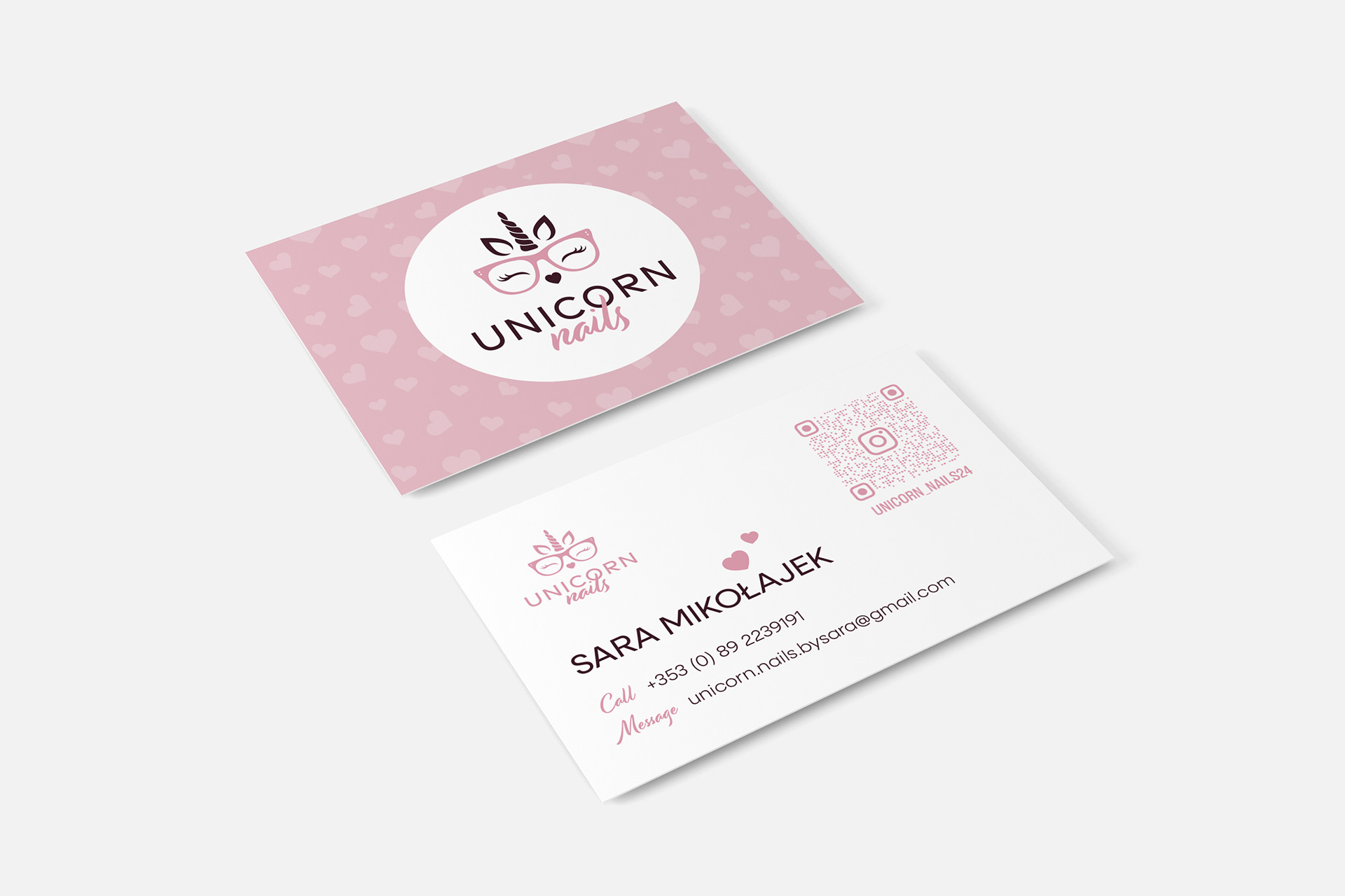Unicorn Nails, a local nail and beauty salon, required a brand identity that reflected its atmosphere and values. The design focused on capturing a look that was cute, friendly, approachable, elegant, and feminine, ensuring the visual style resonated with clients while clearly communicating the salon’s personality.